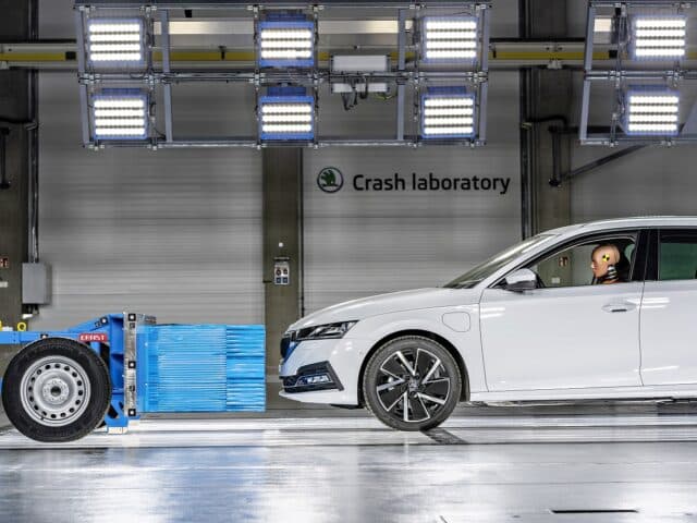 › O primeiro teste de colisão documentado na antiga Checoslováquia foi realizado em Praga, há 50 anos › O Euro NCAP classificou o ŠKODA FABIA e o ŠKODA ENYAQ iV como os veículos mais seguros nas suas respetivas classes; os modelos...